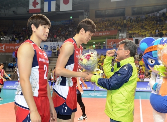 【경기인뉴스】채의선 기자 = 채인석 화성시장은 1일 화성종합경기타운에서 열린 '2013 월드리그 국제배구대회 한-일전'에 참석해 국가대표 배구선수단을 격려하고, 한-일전 1차전 승리의 기쁨을 함께 했다.
