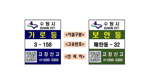 수원시는 7월까지 관내 가로등·보안등 4만 5000여 개를 전수조사하고, 고유번호와 큐알코드(많은 정보를 담은 격자무늬 코드)가 인쇄된 표찰을 각 시설물에 부착할 예정이다. 스마트폰으로 큐알코드를 인식하며 곧바로 관리부서에 신고가 접수된다.
