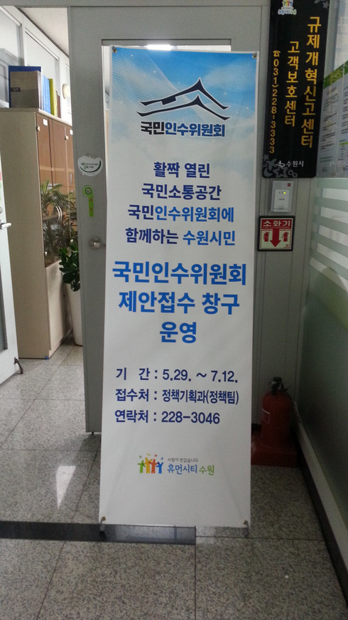 [시사인경제] 수원시는 29일부터 7월 12일까지 수원시청 별관 정책기획과 사무실에 ‘국민인수위원회 제안 접수창구’를 운영한다.