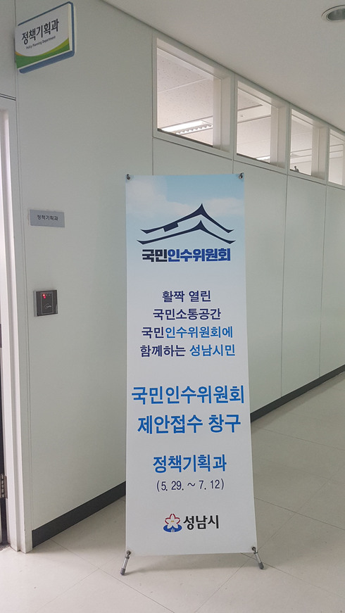 | 성남시청 6층 국민인수위원회 제안 접수 창구 안내 배너 |