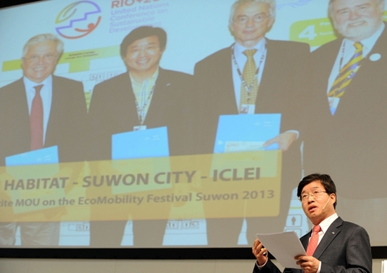 염시장은 “지속가능성을 회복하기 위해 세계 각국의 도시와 도시, 기업과 도시간의 협력이 중요하다”며 “도시혁신을 위해 실천하는 ‘생태교통 수원2013’에 세계 각국의 지방정부 지도자들의 참여를 당부한다”고 밝혔다. 또한 염태영 수원시장은 9일 오후 1시에 열린 ‘슈퍼시티의 도전’이라는 세션에서 ‘생태교통수원2013’을 주제로 세계 각국 도시 지도자들에게 발표했다. 염 시장은 이 자리에서 수원시가 추진하는 '생태교통수원2013'을 국제적으로 홍보하고 세계 각국 도시들의 참여를 유도하며, 석유고갈시대를 대비한 수원시의 혁신적 실천 노력을 소개했다.