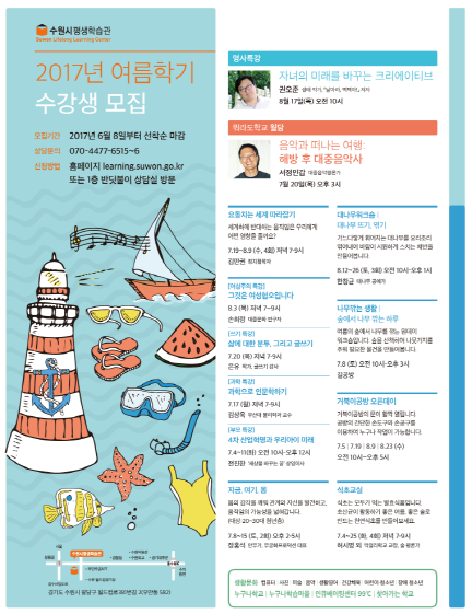 | 수원시 평생학습관 여름학기 수강생 모집_포스터 |