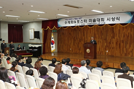 이날 시상식에서는 이명균 수원중부경찰서장을 비롯해 노영관 수원시의회 의장, 홍성관 장안구청장, 윤건모 팔달구청장, 박흥식 수원시 문화교육국장, 수원시교육지원청 이순 교수학습국장, 이찬열 국회의원을 대신해 박은서 사무국장, 박종명 경기언론인연합회장 등이 참석해 지난 10월 19일 만석공원에서 열린 미술대회 참석자 300여명 중 입상자 44명에 대해 상장을 수여하였다.