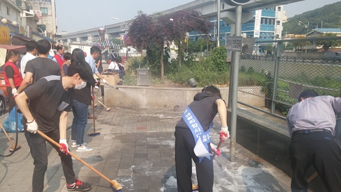 이날 대청소에는 중앙시장 상인회와 김량장동 주민, 처인구청 사회복지과·공원환경과 직원 등이 참여해 중앙시장사거리∼머뭄카페 광장까지 300m구간에버려진 쓰레기를 수거하고 금학천 주변 잡초를 정리했다. 또 처인구에서 살수차를 지원받아 물청소를 병행했다.