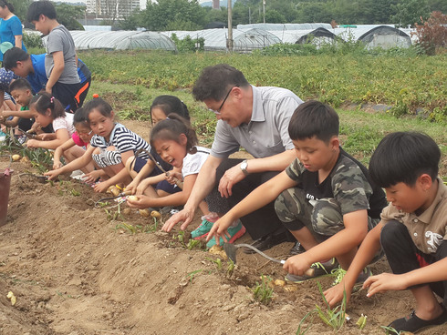 농업기술센터는 이번 행사를 위해 지난 3월 자연학습장 내 3300㎡ 규모 땅에 감자 500㎏을 심어 밭을 일궜다.