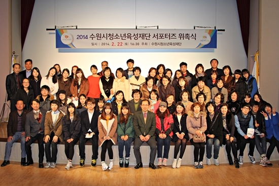 【경기인뉴스】임성택 기자 = 수원시청소년육성재단(이사장 김충영)은 22일 수원청소년문화센터 은하수홀에서 제1기 재단 서포터즈 60명과 함께 첫 발대식을 가졌다.수원 지역의 청소년에게 높은 수준의 프로그램과 서비스를 제공하고 청소년들의 이용률을 높이고자 시작된 이번 서포터즈 발대식은 위촉장 수여, 이사장 인사말씀, 서포터즈 활동설명회, 친교의 시간 등으로 진행되었다.수원시청소년육성재단 서포터즈는 22일 발대식을 첫 시작으로 2014년 한해동안 수원청소년문화센터, 권선청소년수련관, 광교청소년수련관, 장안청소년문화의집, 영통청소년문화의집, 청소년상담센터 소속으로 나뉘어지며 홍보분야, 행정분야, 행사분야의 활동을 하게된다.홍보분야는 블로그, SNS, 카카오스토리, 수원시민기자 활동 등으로 추진되며, 행정분야로는 재단 시설 모니터링, 고객서비스 모니터링 등을 점검하게 되고, 행사분야로 재단의 크고 작은 행사와 프로그램별 모니터링, 진행협조 자원봉사 활동을 하게 된다.이러한 서포터즈 활동을 통해 재단은 양질의 서비스를 수원시민에게 제공하고, 청소년들에게 시설을 알릴 수 있는 효과를 얻을 수 있고, 서포터즈단에게는 재단 내 시설 강좌료 할인, 자원봉사 시간 인증, 우수 서포터즈 시상등의 활동 특전이 주어진다.
