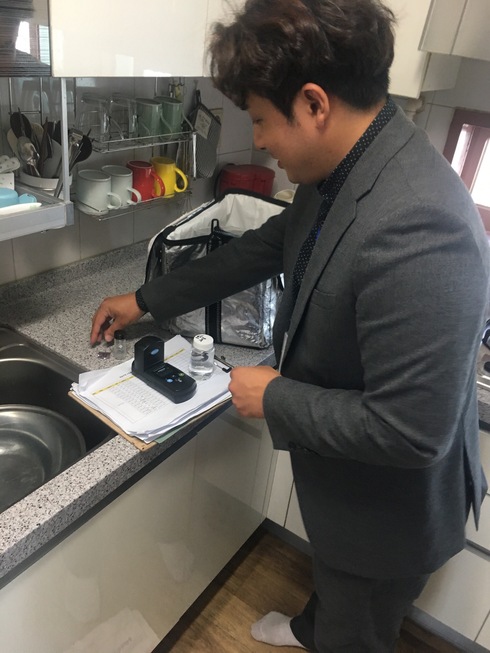 공동주택 수돗물안심확인제 사업은 오래된 공동주택에 동별로 가정집을 직접 방문해 수돗물을 채수해 5개 항목(수소이온농도, 잔류염소, 탁도, 구리, 철)을 수질 검사하고, 그 결과를 시민들이 확인할 수 있는 사업이다.