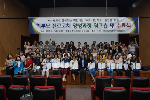 또한 기존 수료자들 중 2017년도 학부모 진로코치 활동을 희망하는 학부모들의 신청을 받아 이번 수료식에서 총 71명의 학부모들이 2017년도 오산시 학부모 진로코치단으로 위촉을 받게 됐으며, 위촉을 받은 학부모 진로코치단은 2학기부터 지역사회가 함께하는 직업체험‘미리내일학교’프로그램에 참여하게 된다.