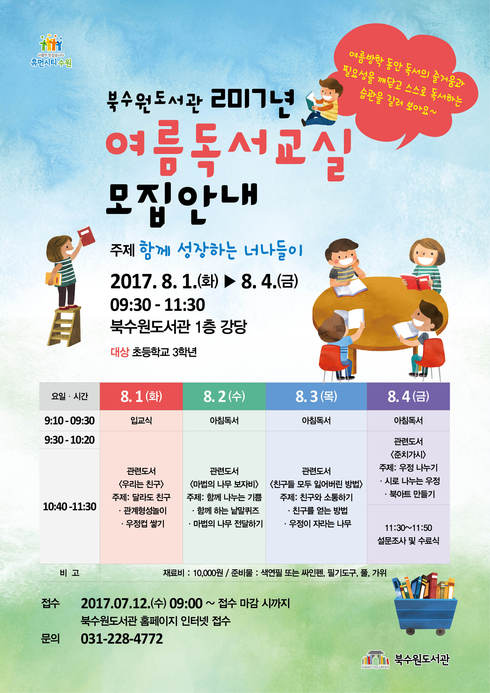 | 북수원도서관 2017년 여름독서교실 모집 안내 |