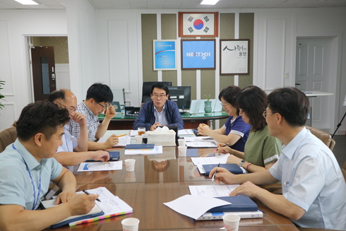 | 송면섭 처인구청장이 직원들로부터 업무보고를 받고 있다 |