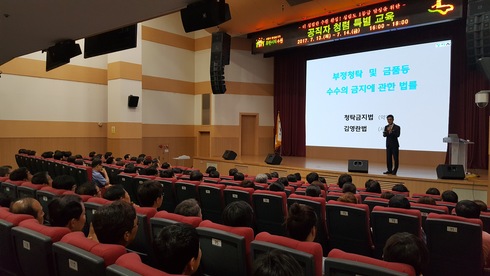 박 강사는 “공직문화의 뿌리는 청렴”이라며 “청탁금지법 시행은 우리사회에서 중요하게 여겨왔던 가치들을 저울에 올리고, 고민을 거듭해서 결단을 내리는 일련의 과정이라고 할 수 있다”고 말했다.
