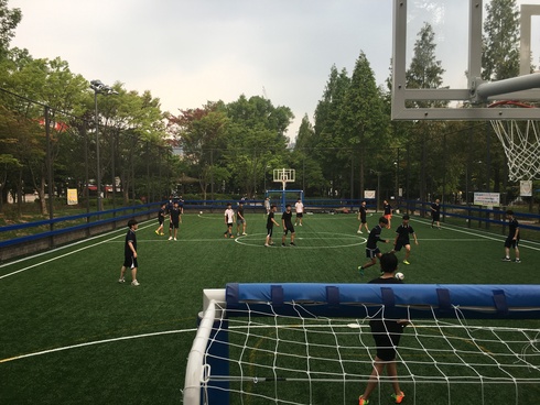 시는 기존 노후된 농구장을 확장하고 바닥에 인조잔디를 깔아 풋살과 농구를 함께 즐길 수 있도록 했다.