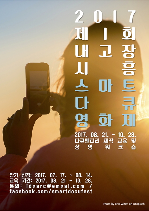 교육 신청 및 자세한 사항은 페이스북 페이지(facebook.com/smartdocufest)에서 확인할 수 있다. 교육 참가 신청은 지난 17일부터 오는 8월 14일까지 온라인 및 방문 접수하며, 교육은 8월 21일부터 10월 27일까지 매주 월요일, 금요일 저녁 6시 30분부터 시흥시청 내에서 진행한다. 이번 행사는 2016년 주민참여예산사업 공모 선정 사업이다.
