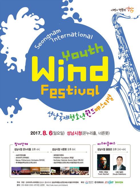 성남시는 코주빅이 오는 8월 6일 오후 2시∼7시 시청 온누리, 로비, 야외 광장 너른못 등에서 ‘제6회 성남 국제 청소년 윈드 페스티벌’을 연다고 전했다.