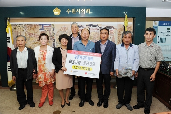 【경기인뉴스】임성택 기자 = 지난 11일 수원시의회 의장실에서 이색적인 성금 전달식이 있었다.수원시구두협회(회장 한금정)에서 지난 1년간 수원시 관내 80개소 구이닦이소에서 한 푼 두 푼 모금한 모금액 1백7십여만 원을 수원시의회를 통해 어려운 이웃에게 전달해 달라고 기탁한 것이다.이에 수원시의회에서는 경기도사회복지공동모금회를 통한 지정 기탁식을 갖고 수원시 관내 복지시설에 전달하였다.수원시의회 노영관 의장은 어려운 여건 속에서도 자신의 처지 보다 더 어려운 이웃을 위해 솔선해 주고 있는 수원시구두협회 관계자들을 격려하고 어려운 이웃과 함께하겠다는 따뜻한 마음이 모일 때 수원시는 진정한 휴먼시티가 될 수 있을 것이라고 소견을 밝혔다.