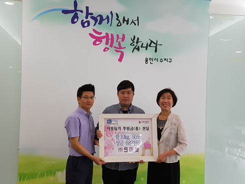 [시사인경제] 용인시 수지구는 지난 8일 동천동 소재 유통업체 ㈜올마켓에서 어려운 이웃을 위해 써 달라며 쌀 10kg짜리 50포와 성금 68만2천원을 기탁했다고 밝혔다.