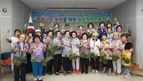 [시사인경제]용인시 수지구 신봉동은 지역사회보장협의체에서 지난 5월부터 10주동안 홀로어르신이나 만성질환자의 심신 안정을 돕기 위한 ‘힐링정원 만들기’를 실시했다고 11일 밝혔다.