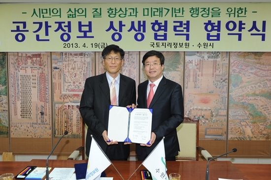 특히 수원시는 국토지리정보원으로부터 무인항공기와 로드뷰 촬영장비 등을 지원받아 ‘생태교통 수원2013’ 행사지역의 행사 전․후 모습을 촬영할 예정이다. 시 관계자는 “이번 협약으로 더욱 향상된 공간정보 시스템의 운영이 가능할 것으로 기대한다”며 “시민들이 더욱 현실적이고 우수한 공간정보를 제공받을 수 있도록 최선을 다하겠다”라고 말했다. 한편 수원시와 국토지리정보원은 지난해 1월부터 최고의 해상도와 정밀도가 응용된 3차원 공간정보 및 1/500 수치지형도 구축사업을 세계최초로 추진하고 있다.