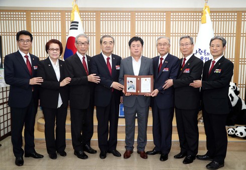 [시사인경제] 용인시는 정찬민 용인시장이 지난 17일 오후 시장실에서 국가수호 유공자단체인 대한민국 무공수훈자회로부터 감사패를 받았다고 밝혔다.