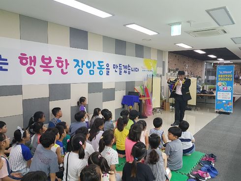 [시사인경제] 의정부시 장암동 주민자치위원회는 지난 18일 장암아래뜰길(의정부시 동일로 지하 432)에서 주민자치센터 아동 수강생들을 대상으로 여름방학맞이 ‘매직벌룬쇼’를 성황리에 개최했다고 밝혔다.