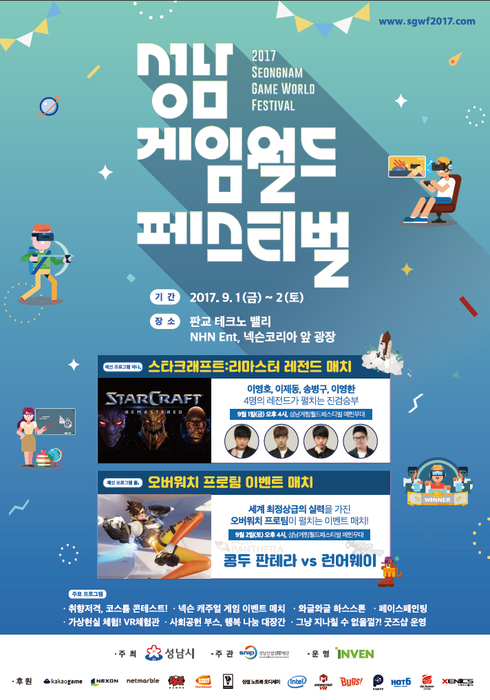 성남 시민과 게임인이 함께하는 축제가 될 ‘성남 게임 월드 페스티벌'에 대한 보다 자세한 내용은 공식 홈페이지(http://www.sgwf2017.com)에서 확인할 수 있다.