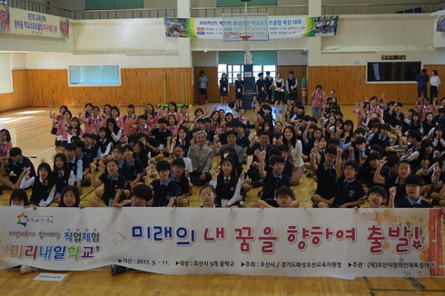 지역사회가 함께하는 직업체험 ‘미리내일학교’는 미리 내 일(job)을 체험한다는 의미와 나의 미래를 미리 체험해 보자는 취지로 2015년부터 운영되고 있는 오산시만의 자유학년제 프로그램이다.
