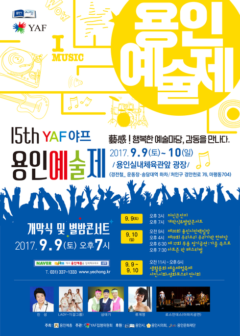 용인예총 관계자는 “풍성한 볼거리와 다양한 문화예술을 직접 체험할 수 있는 용인의 대표적인 예술제에 많은 시민들이 참여하기를 바란다”고 말했다.