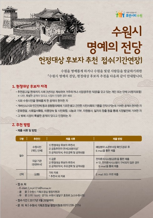 | 수원시 명예의 전당 헌정대상 후보자 추천 접수 |