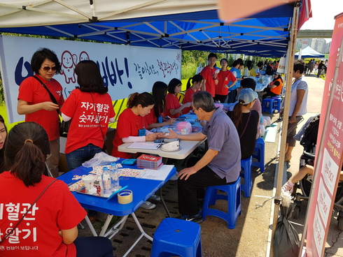 특히 지난 2일 레드써클존은(삼패동 점프벼룩시장) 심뇌혈관질환에 가장 많은 건강위험요인(흡연, 음주, 운동부족, 식사)등을 가졌으나 적절한 관리를 못하는 3040세대를 타깃으로 아이들과 함께하는 ‘엄마∼아빠 함께해요. 혈관숫자알기’라는 행사가 운영됐고 가족단위의 많은 참여가 이루어졌다. 더불어, 혈당중독체험관을 운영해 혈당조절의 중요성을 알리기 위한 프로그램도 진행했다.