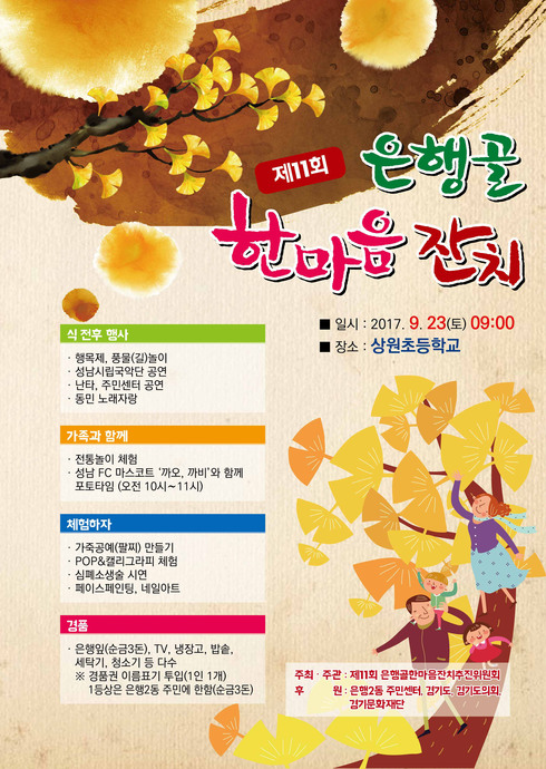 [시사인경제] ‘제11회 은행골 한마음 잔치’가 오는 23일 오전 9시∼오후 4시 성남시 중원구 은행2동 상원초등학교 운동장에서 열린다.