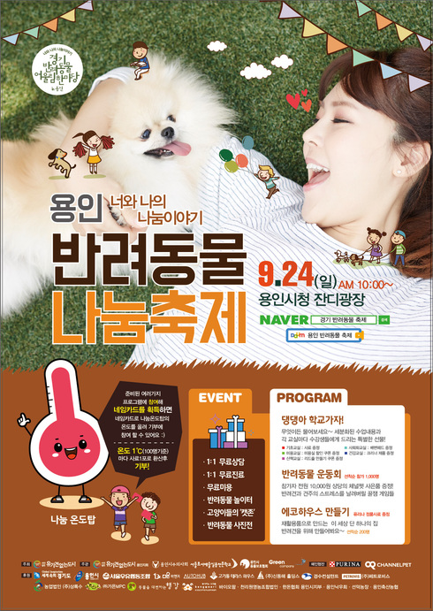 용인에서 처음 열리는 이번 반려동물축제는 (사)유기견없는도시가 주최하고 용인시수의사회, 용인동물보호협회가 주관하며, 경기도와 용인시가 후원한다. 지난 6월에는 기흥호수공원 반려동물 놀이터에서 ‘반려동물 문화교실’이 열린바 있다.