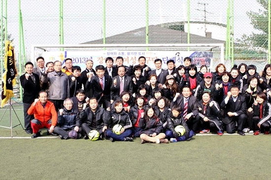 【경기인뉴스】채의선 기자 = 수원시 장안구는 28일 만석공원 인조잔디구장에서 홍성관 구청장을 비롯해 내빈과 많은 축구관계자가 참석한 가운데 장안구 여성축구단 신년 단배식을 가졌다.