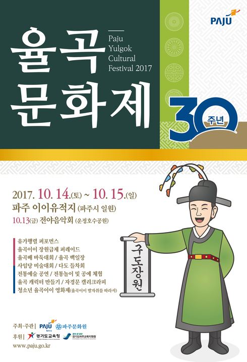 율곡과 신사임당 등 가족 묘역과 자운서원, 율곡기념관 등이 자리한 파주 이이유적에서 1987년부터 매년 10월 품격 있는 전통문화 향연이 펼쳐졌으며 올해는 금촌, 운정신도시 등 축제 장소를 파주 곳곳으로 확대했다.