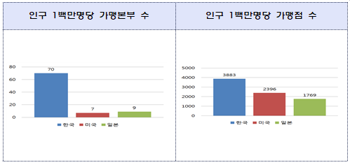 | 각 국의 프랜차이즈 가맹본부 수와 가맹점 수의 비교 |