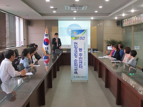 【경기인뉴스】이연수 기자 = 수원시 장안구(구청장 홍성관)에서는 오는 5월말까지 10개동 주민센터 직원들을 대상으로『동 주민센터 현장코칭 순회교육』을 실시한다.