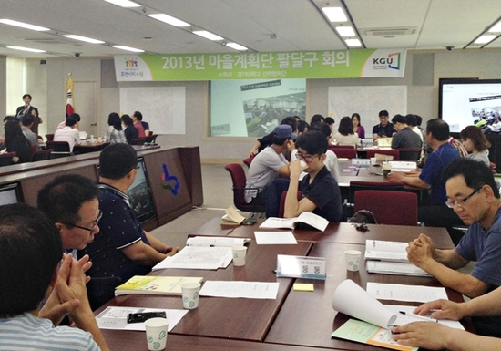 【경기인뉴스】임성택 기자 = 수원시 팔달구(구청장 윤건모)에서는 지난 14일, 15일 팔달구 각 동의 마을 계획단이 시청 중회의실에 모여서 주민 스스로 마을을 만들어 가기 위해 머리를 맞대었다. 이는 시민이 주인되는 거버넌스 행정을 구현하고 사람이 반가운 살기 좋은 마을을 성공적으로 만들어가기 위해 수원시에서 역점을 두어 추진 중에 있는『2013 수원 마을 계획단』의 일환으로 책임교수의 지도 하에 각 동마다 마을 계획단 운영진들이 모여 우리 동의 장ㆍ단점, 기회와 위협 요인들을 하나하나 짚어 봄으로써 막연히 느끼고 있는 우리 마을을 일목요연하게 정리해 보는 시간을 가졌다. 이번 운영회의는 전문인이 주도가 아닌 주민들의 의견들이 모여 소박하지만 진실된 의견들을 모을 수 있는 소중한 시간이었고 이것이야말로 진정한 주민자치로 한걸음 크게 내딛는 의미 있는 시간이었다.