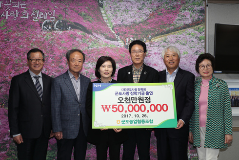군포시는 최근 군포농협 조합원들이 인재 육성과 교육 발전을 위해 써 달라며 군포사랑장학회에 장학금 5천만원을 쾌척했다고 밝혔다.