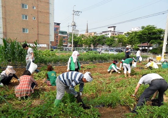 【경기인뉴스】채의선 기자 = 수원시 권선구 곡선동 새마을협의회(회장 이재호)는 25일 곡선동주민센터 옆 공한지에 어려운 이웃돕기를 위한 감자 및 마늘을 심어 수확하는 합동작업을 실시했다.이날 행사는 더운 날씨 속에 새마을 3개단체(지도자협의회, 부녀회, 문고회) 30여명이 참여해 호미로 감자오아 마늘을 케고 다듬어 묶는 작업을 실시했으며, 어려운 홀몸 어르신과 소년소녀 가장에게 많은 감자를 전달할수 있도록 구슬땀을 흘렸다.또한 곡선동 새마을협의회 관계자는 "사랑의 텃밭에서 수확한 채소 및 마늘에서 얻어지는 수익금으로 어려운 이웃 20명에게 쌀을 전달할 계획에 있다"라며, "앞으로도 훈훈하고 정감 있는 곡선동을 만들기 위해 지속적인 관심을 갖고 어려운 이웃돕기에 아낌없는 노력을 다하겠다"고 말했다.