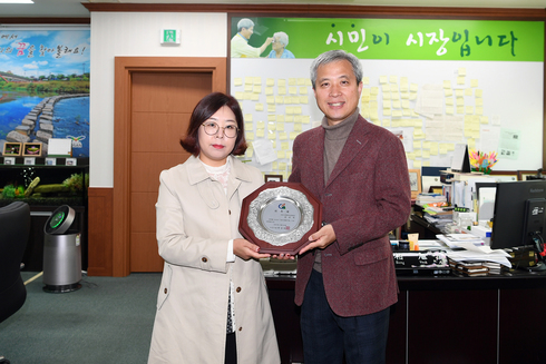 곽상욱 오산시장은 집무실에서 세마동 지역사회보장협의체 위원인 김금옥씨와 환담을 나누며 명예시장으로서의 임무를 성실히 이행해 줄 것을 당부했다.