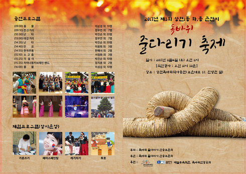 독바위줄다리기 전승보전회가 주최하는 이번 행사는 주민 안녕 기원제를 시작으로 용줄다리기, 난타, 민요, 밴드 공연 등의 다채로운 행사가 이어진다. 주민들이 참여할 수 있는 민속놀이체험과 가훈쓰기 등 다양한 부대행사도 마련된다.