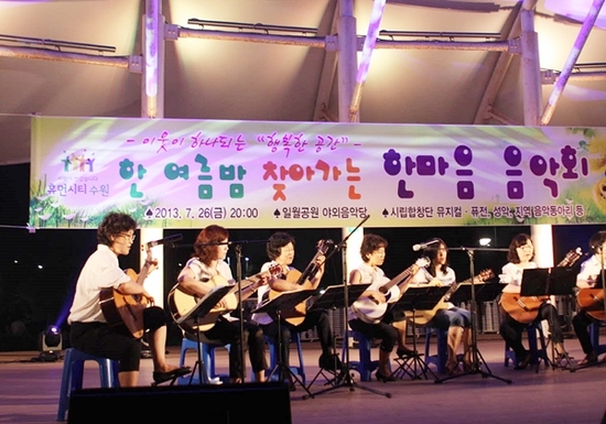 【경기인뉴스】임성택 기자 = 수원시 장안구 율천동(동장 김현광)에서는 성균관대 뒤쪽에 위치하고 있는 천천동 지역과 율전동 주민의 화합을 염원하고 한 여름밤 무더위를 식혀주고자 지난 26일 밤 8시부터 일월공원 야외음악당에서 주민 1,000여명이 참여한 가운데 한마음 음악회를 개최했다.