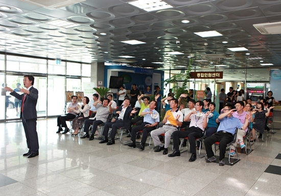 【경기인뉴스】임성택 기자 = 수원시 권선구청 1층 로비에서 26일 「2013 수원합창 페스티벌」이 열렸다. 이번 음악회는 권선구 여성합창단 결성 후 처음으로 마련한 런치음악회로, 구청을 방문하는 민원들과 직원들을 대상으로 점심시간 30여분간 진행하는 미니콘서트였다. 남성중창단의 나폴리 민요「Funiculi-Funicula」, You Raise Me Up, 영화『Sister Act』의 OST「Oh, Happy Day」등 공연에 이어 권선구 여성합창단의 초록바다, 늴리리맘보, 바위섬 등 시민들에게 익숙한 곡을 멋지게 선보여 올해 초 20여명의 단원으로 구성된 권선구 여성합창단은 이번 공연이 공식적인 첫 공연이었음에도 시민들의 환호를 받았다. 수원시립합창단 창단 30주년을 기념하는「2013 수원합창 페스티벌」은 26일 권선구 공연을 시작으로 장안구청, 영통구청, 수원역과 아주대학교 병원, 대형마트 등을 순회하는 일정으로 환희와 열정이 가득한 축제를 펼칠 예정이다.김정수 권선구청장은 “감동과 화합의 축제를 마련해주신 정창준 지휘자들께 짧은 시간 내에 시민들을 위해 이렇게 멋진 하모니를 준비해주신 권선구 여성합창단원들께 깊은 감사의 말씀을 드린다. 앞으로 계획된 10여회의 런치음악회가 모두 성공적으로 개최되길 바란다며 권선구청 월례모임 공연 때에도 다시 한번 뵙기를 희망한다”고 소감을 전했다.
