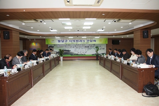 【경기인뉴스】채의선 기자 = 수원시 팔달구(구청장 윤건모)는 28일 팔달구청 대회의실에서 지역 시의원을 초청하여 지역의 주요 현안 및 2014년도 주요사업계획에 대한 설명회를 가졌다. 팔달구 지역발전 협력체계 구축을 위해 수원시 도시환경위원장 김명욱 의원 등 7명의 팔달구 시의원이 참여한 가운데 주민 생활환경 개선과 주민불편지역 도로개설·정비, 팔달구 청사이전 등 주요현안사업에 대한 의견을 교환하고 건의사항 전달을 통해 발전방안을 모색하기도 하였다. 윤건모 구청장은 “각종 주민 숙원 사업이 원활하게 추진될 수 있도록 의원님들의 적극적인 협조가 필요하며, 공동의 노력을 해나가자.”고 당부하였으며, 설명회에 참석한 시의원은 적극적인 지원을 약속하고 주요 현안사업 추진에 주민들의 의견이 적극 반영될 수 있도록 노력해달라고 전했다.