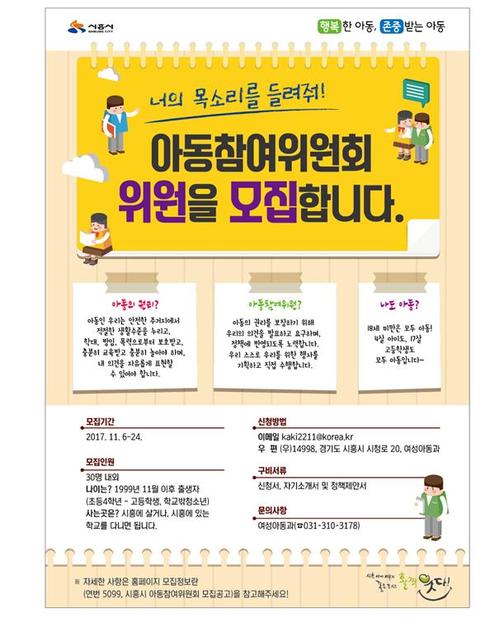 [시사인경제] 시흥시는 아동권리 보장과 아동의견 수렴을 위해 아동참여위원회 위원을 공개모집한다.