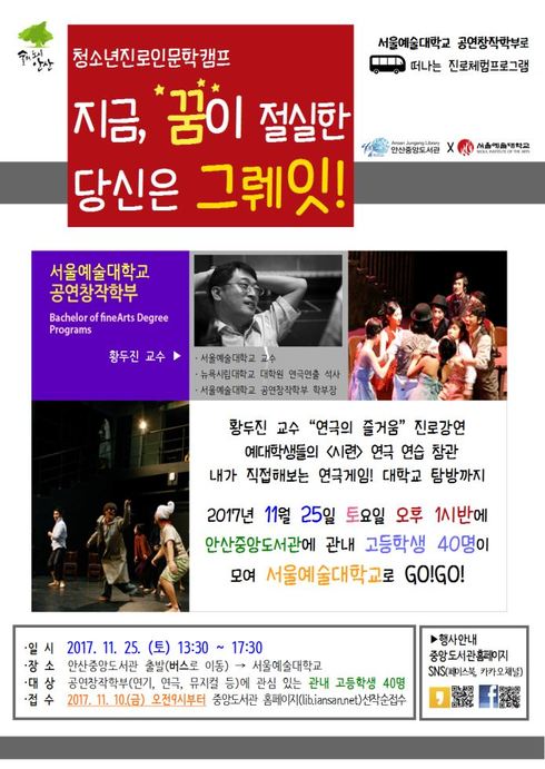 | 청소년 진로 인문학 캠프 지금, 꿈이 절실한 당신은 그뤠잇! |