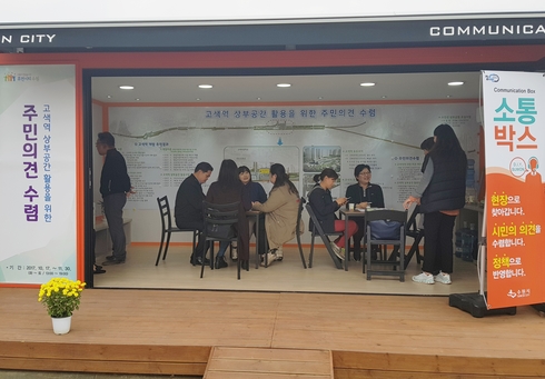 시는 지난달 19일 ‘고색역 상부 유휴부지 활용방안’에 대한 시민 의견수렴을 위해 고색동 일원에 ‘제1호 소통박스’를 설치했다. 이번 소통박스는 오는 30일까지 매주 화∼토요일 오후 1시부터 7시까지 운영된다. 박스에는 해당 사업에 대해 충분한 정보를 갖춘 안내요원 2명이 상시 근무하며 시민 참여를 돕고 있다.