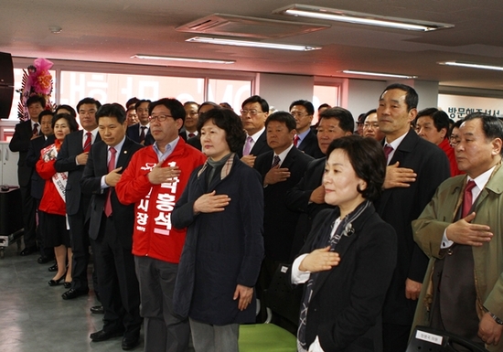 【경기인뉴스】박진영 기자 = 박흥석 새누리당 수원시장 예비후보 선거사무실 개소식이 11일 수원시 권선구 효원로 시청사거리 선거캠프에서 홍문종 중앙당 사무총장, 경기도지사 선거 출마를 선언한 남경필, 원유철, 정병국(이상희 여사 대신 참석)국회의원과 김영선 전 국회의원, 유승우(이천).김명연(안산)국회의원, 반종원 수원시기독교총연합회장, 도.시의원, 내외빈 등 1천여명이 참석한 가운데 열렸다. 이에 앞서 홍 사무총장은 격려사를 통해 “6.4 지방선거는 대통령선거의 완결판이며 대통령 통치철학을 실천하는 중요한 선거로 반드시 승리해야 한다”고 말하고 “박흥석 수원시장 예비후보는 어려서부터 죽마고우로 지내온 사이로 수원을 누구보다 잘 알고 사랑하는 박 예비후보가 대박시장이 되도록 밀어달라”고 말했다. 이어 ‘여러분이 사랑하는 박흥석 후보를 소개합니다’라고 환호를 이끈 남경필 의원은 “노무현 전 대통령이 지방선거에서 참패하고 식물 대통령이 된 전철을 밟지 않기 위해서는 경기도에서 이번 지방선거 승리의 견인차 역할을 해야 한다”며 “수원시장 선거는 아름다운 경선, 당당한 경선을 통해 하나로 합해져 본선에 임해야 한다”고 말했다.