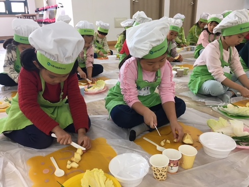 이번 교육은 ‘가을채소 배추’와 ‘키가쑥쑥 콩나물’을 주제로 이야기를 나누고 김장재료 준비하기, 콩나물 키우기 등 놀이활동을 포함해 과일김치와 콩나물 주먹밥 만들기 등 요리수업을 통해 생생한 실물 먹거리를 경험하고 체험하는 방식으로 진행된다.