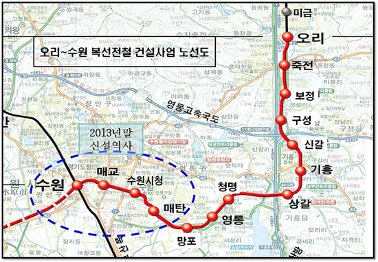 【경기인뉴스】임성택 기자 = 수원시는 오리~수원 복선전철 건설사업의 2013년말 개통을 맞아 미 개통 구간에 대한 역명선정을 오는 13일(월) 오후 2시 30분에 수원시청 대강당에서 주민설명회를 개최한다. 이번 주민설명회는 오리~수원 복선전철 개요를 설명하고, 노선의 현황과 역 위치, 역명 선정 방법, 주민 참여 방법 등으로 진행된다. 이 자리에는 사업시행자인 한국철도시설공단에서 참석해 자세한 사업설명과 함께 질의 응답의 시간을 갖는다.올해말에 개통될 신설 역은 매탄, 시청, 매교, 수원(가칭)의 4개소로, 역명 공모, 전문가 자문, 주민투표 등을 통해 시민의 의견이 최대한 반영될 수 있도록 할 예정이다.역명 공모기간은 5월 20일부터 6월 9일까지이며, 전문가 자문을 거쳐 공모작을 선정 후 6월 24일부터 7월 14일까지 수원시청 홈페이지를 통해 온라인 주민 투표를 실시한다. 최종결과는 7월 22일에 발표된다. 한편, 오리~수원 복선전철 건설사업은 총사업비 1조 4천억원으로, 1997년 기본계획이 수립돼 2004년 12월부터 단계적으로 착공했다. 지난해 12월 1일 청명, 영통, 망포역까지 부분 개통돼 하루평균 2만 5천명의 시민들이 이용하고 있다. 2013년말 개통을 목표로 추진하는 잔여구간은 6.13km이며, 노반기준 공정율 95%로 막바지 공사가 순조롭게 진행되고 있다.