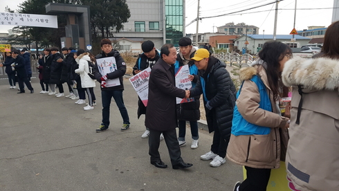 이 자리에서 청소년육성재단 이사장은 함께 박수를 치고 “수능대박” “시험 잘 보세요”를 외치며 추운 날씨에 응원을 하러 청소년 차세대와 청소년운영위원회들과 함께 수험생이 수능을 잘 치르길 기원했다.